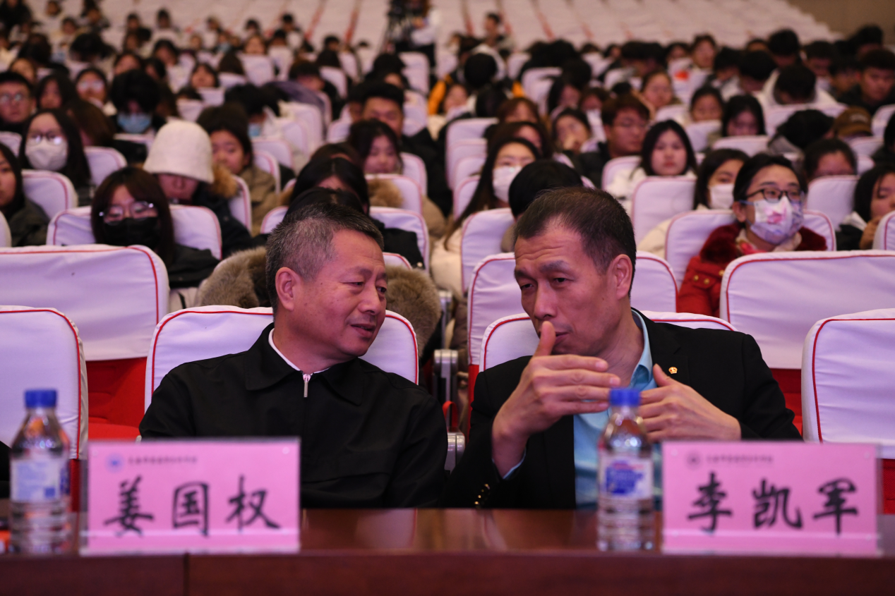 中国一汽首席技能大师、正高级工程师、吉林省首位工人省管高级专家李凯军,学校党委副书记、校长姜国权, 学生处处长赵彤军、各学院党总支书记、院长、学工科科长、全体辅导员以及1000名学生代表参加此次活动。